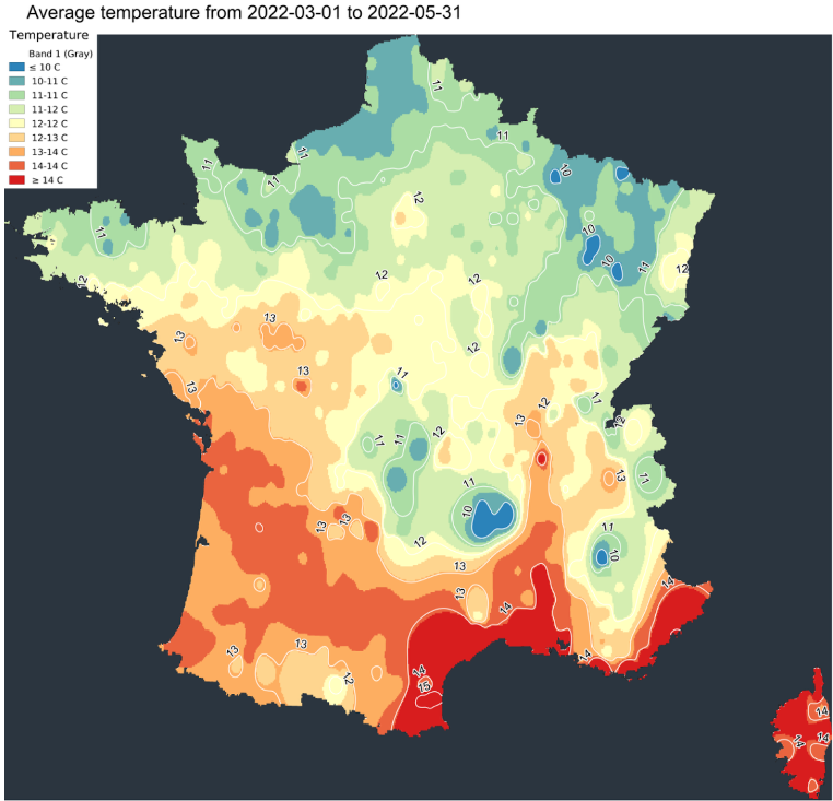 Malheureusement, comme ces derniers mois, le beau temps a dominé la France. Les températures ont une nouvelle fois été très élevées à l’échelle nationale. Météo France indiquera d’ailleurs en juin dernier que « le printemps 2022 se classe au 3ème rang (ex æquo avec le printemps 2007) des printemps les plus chauds ». En clair, durant ces 3 mois, on a relevé une température moyenne sur la France de 13.2°C, soit une valeur supérieure de 1.6°C à la normale de saison pour cette période. Mai a été le mois le plus chaud de la saison, avec des températures l’après-midi souvent comprises entre 3 et 5°C au-dessus des normales de saison, d’après l’organisme Météo France. Mai 2022 se classera d’ailleurs à la première place des mois de mai les plus chauds de l’histoire en France.