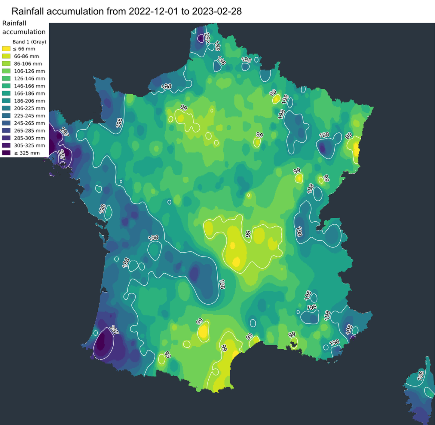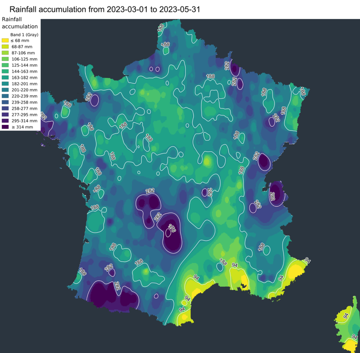 Durant 32 jours, pas une seule goutte de pluie n’est tombée en France entre la fin janvier et la fin février. Du jamais-vu, faisant craindre déjà à l’époque un manque de précipitations sérieux pour la suite de l’année. Le mois de février a ainsi été extrêmement sec avec un déficit de pluie de 75% d’après les données officielles de Météo France. Le déficit total de précipitations sur le pays atteint les 25% sur la durée totale de l’hiver.