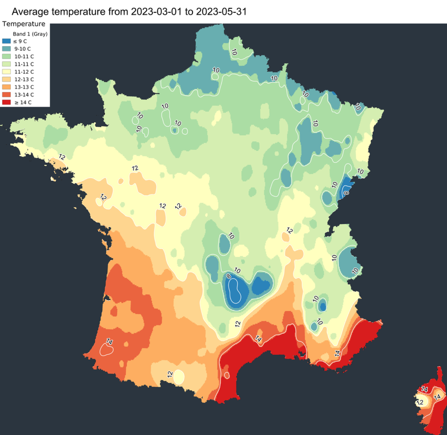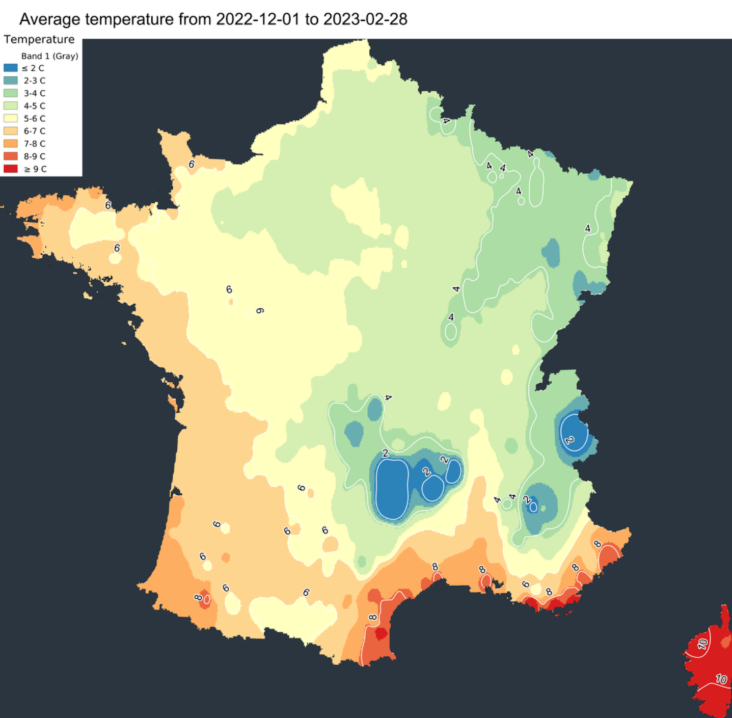 Malgré quelques tentatives, le froid ne s’est pas durablement installé. Les températures ont parfois plongé, comme le 17 décembre 2022 avec près de -10°C sur certaines stations du Puy-de-Dôme. On relèvera également entre -4 et -12°C de la Normandie à la plaine d’Alsace durant cette même journée glaciale. Mais très vite, la douceur a chassé l’hiver avec plusieurs records observés lors des fêtes de fin d’année. La saison froide est donc restée trop douce en moyenne, avec des températures parfois situées 1 à 2°C au-dessus des valeurs de saison notamment sur la façade Est du pays.