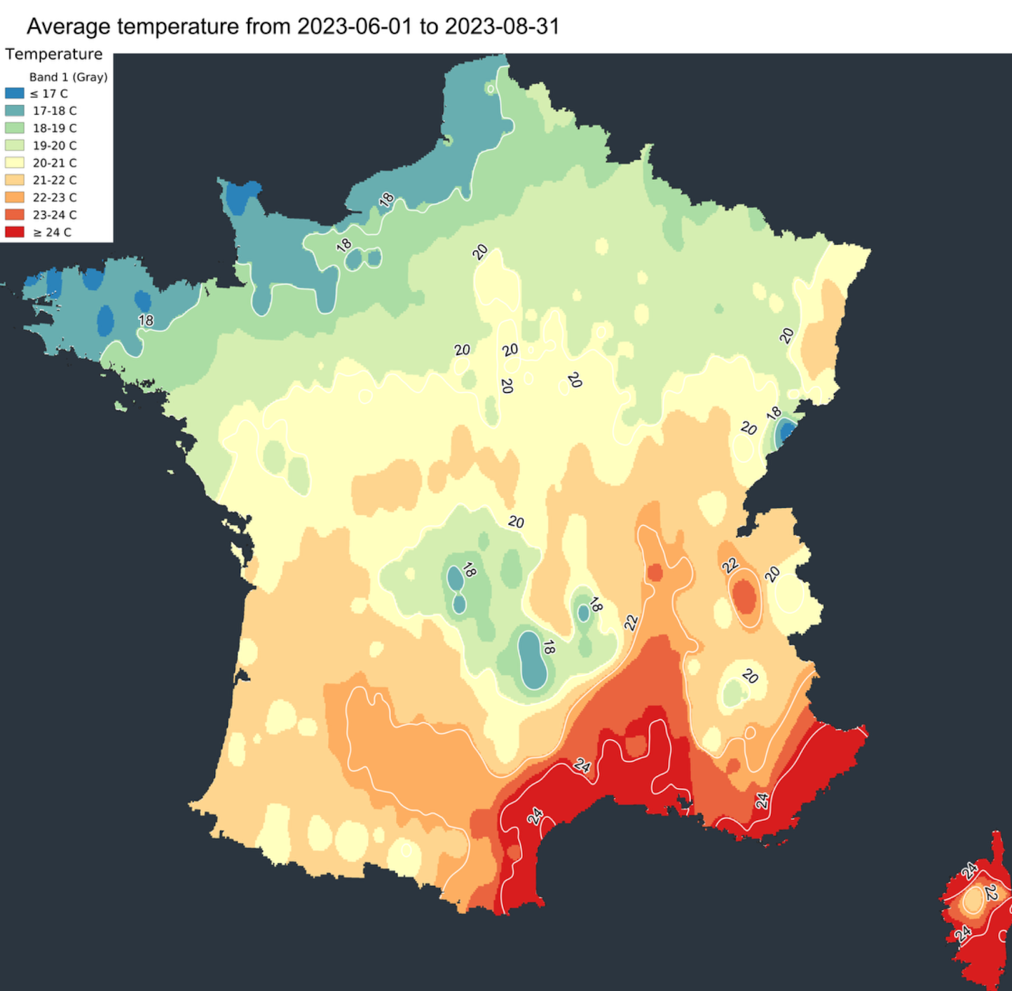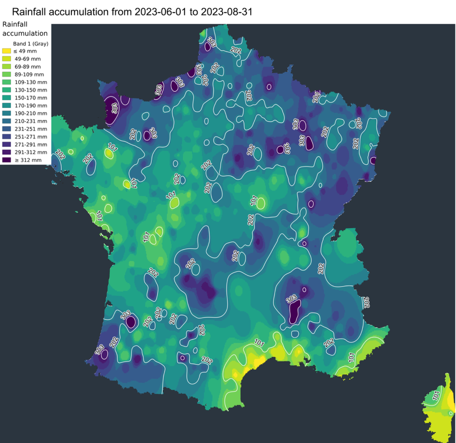 Un peu comme lors du printemps 2023, la pluviométrie a dans l’ensemble été conforme aux normales saisonnières lorsque l’on analyse à l’échelle nationale. Mais attention, cela ne doit pas cacher les grandes disparités à l’échelle locale. Les agriculteurs de la vallée du Rhône n’ont pas connu les mêmes conditions que leurs confrères bretons. On notera également le retour d’orages particulièrement violents sur la première partie de l’été, entre juin et juillet entre la Nouvelle-Aquitaine et la région Grand-Est. Dans le Sud-Est, la sécheresse en permanente accentuation jusqu’à la mi-juin, avant le retour de précipitations, a repris un nouvel élan jusqu’en août avant le retour de conditions plus humides sur les derniers jours de l’été.