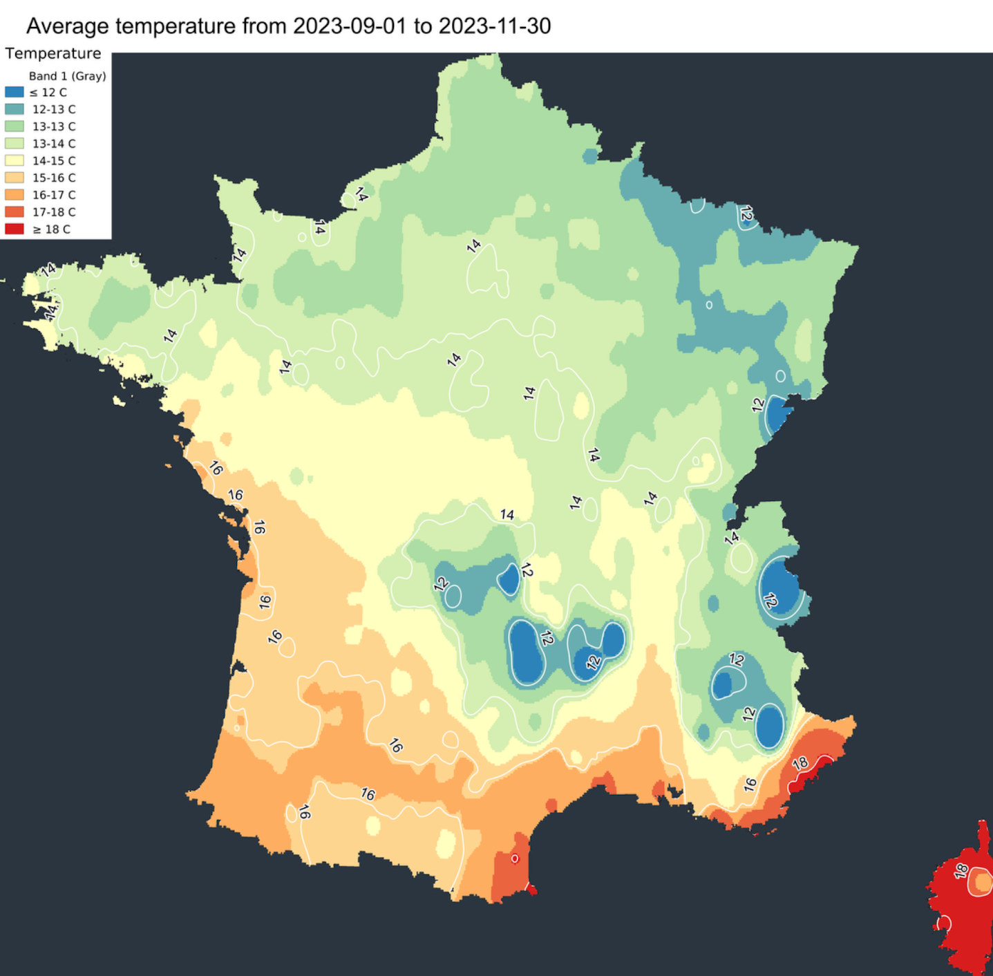 Et si l’été ne voulait pas partir ? Difficile en effet de parler de conditions automnales en France jusqu’à la mi-octobre. Les températures ont été remarquables en septembre, mais aussi début octobre comme dans le Centre-Ouest avec des températures dépassant parfois les 30°C. L’automne 2023 se classe à la première place des automnes les plus chauds de France depuis le début des relevés. D’après les données climatologiques officielles de Météo France, la température nationale a été 2,5°C plus chaude que la normale saisonnière.