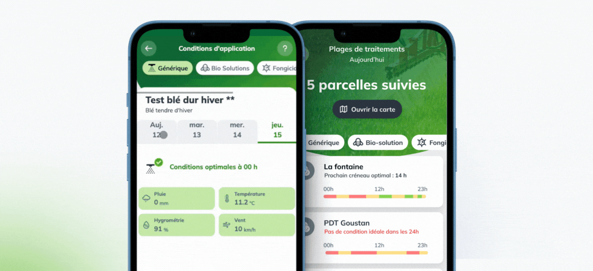 Ne vous laissez plus surprendre par la météo, notamment grâce aux alertes : par exemple en cas de risque de gel, de maladie ou encore lorsque les conditions sont optimales pour aller traiter.
