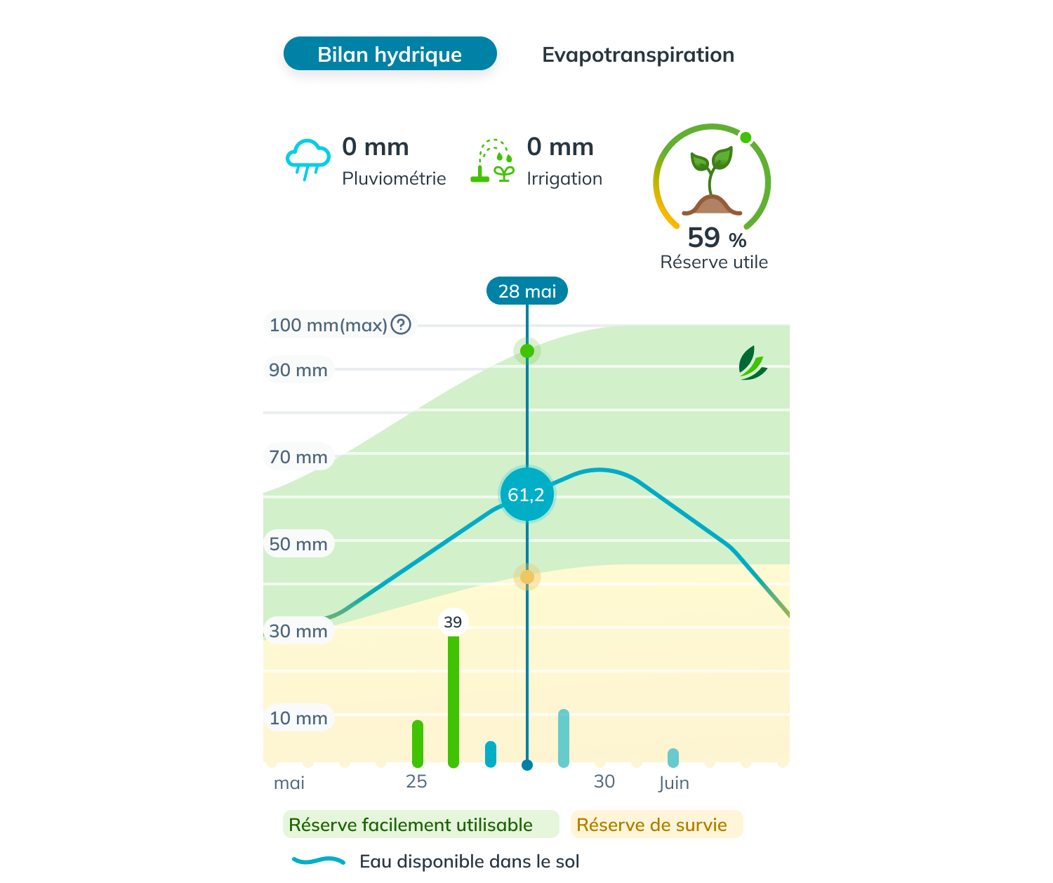 Sencrop vous permet également, par exemple, de suivre l’état hydrique de vos parcelles et d’identifier le meilleur moment pour déclencher votre irrigation et ainsi économiser des tours d’eau.