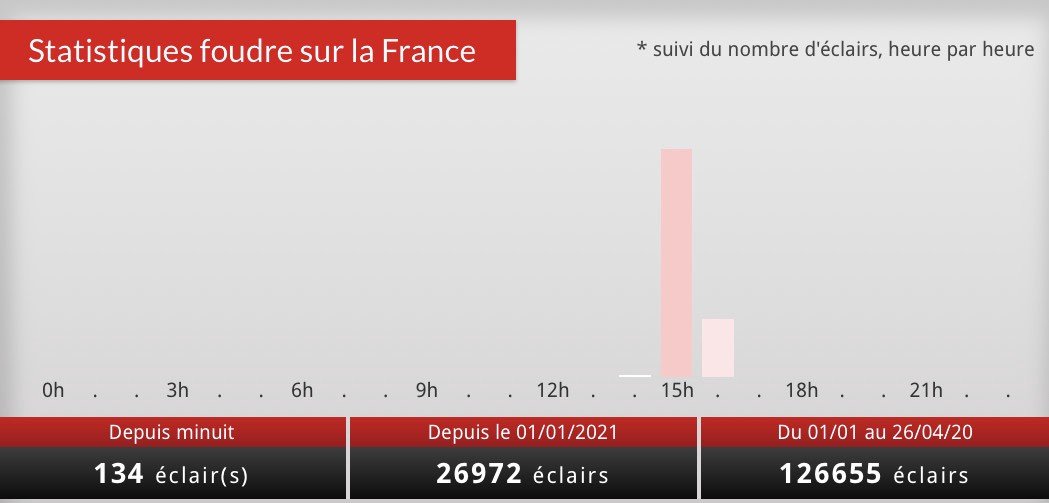 Peu de français ont entendu le tonnerre gronder depuis le début de l’année. Près de 100 000 éclairs en moins ont été observés en France depuis janvier 2021, par rapport à l’année dernière. Un chiffre confirmé par l’Observatoire français des orages violents et des tornades en France. Le 26 avril dernier, on pouvait ainsi lire sur leur site (www.keraunos.org) que près de 26 000 éclairs ont été vus au-dessus de la France entre le 1er janvier et le 26 avril. Contre 126 000 pour la même période en 2020.